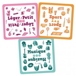 Cette boite contient: 10 nouveaux thèmes originaux qui renouvellent complètement le jeu : petit/léger, musique, gros mots, personnage fictif...